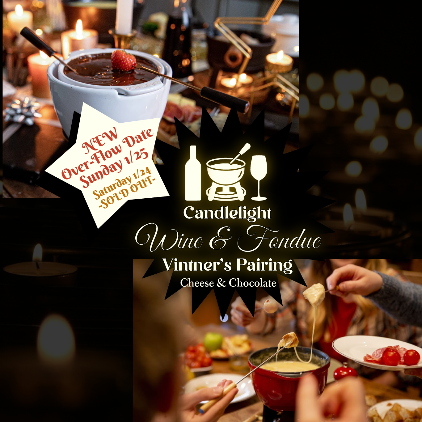 Candlelight Wine & Fondue SATURDAY JAN 24 @ 6PM – 8PM Join us on Saturday, January 24th for a candlelight wine & fondue pairing buffet. There will be both cheese and chocolate fondue with various accompaniments. Those of you who have been to our Golden Hour Charcuterie Dinners know we don’t play around when it […]